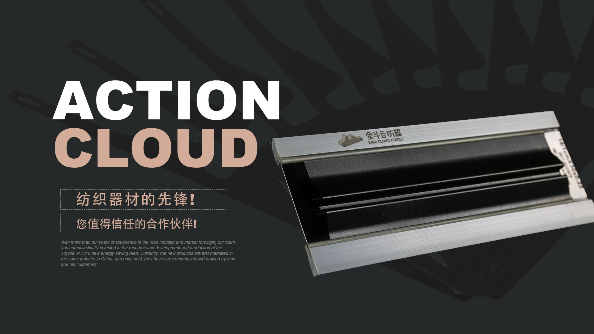 憑借十多年鋼筘行業經驗及對市場的前瞻性,我們團隊滿懷熱情的投入到豐田JAT810新型節(jié)能鋼筘的研發(fā)和生產當中,目前新產品在國內同行業中先行上市銷售,一經銷售就得到了新老客戶的認可和好評!